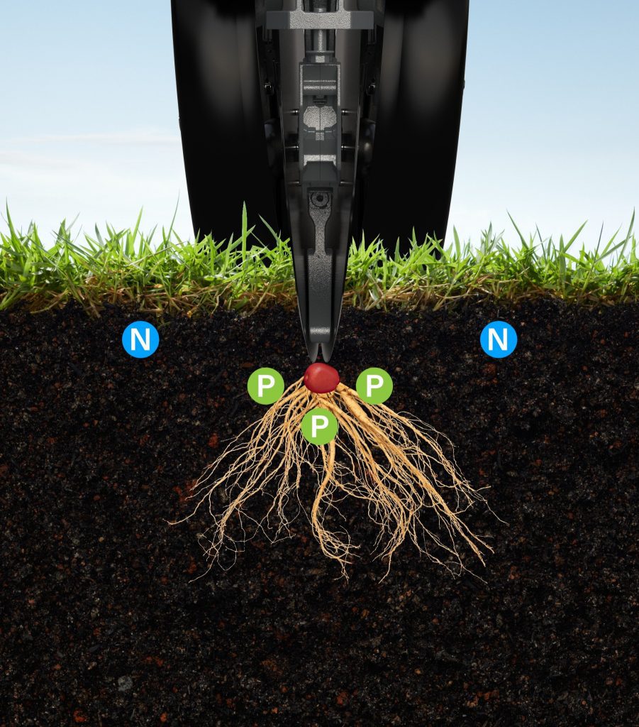 | Nutrient Placement Ensuring your plant has the best possible start in life. Accurately placing nutrients in the soil with the seed can dramatically improve emergence and vigour during the plants early growth stages. In comparison to broadcasting nutrients on the soil surface, placing nutrients in the soil during the planter pass will also reduce leaching and increase utilization which will therefore unlock opportunities to reduce application rates. The Horizon PPX offers farmers the ability to place either granular or liquid fertilizers in the seed furrow and also in bands to the side of the seed. Typically Horizon PPX customers will place a phosphate based starter fertilizer in the seed furrow and a nitrogen based fertilizer to the side of the seed, perhaps 5cm away. |