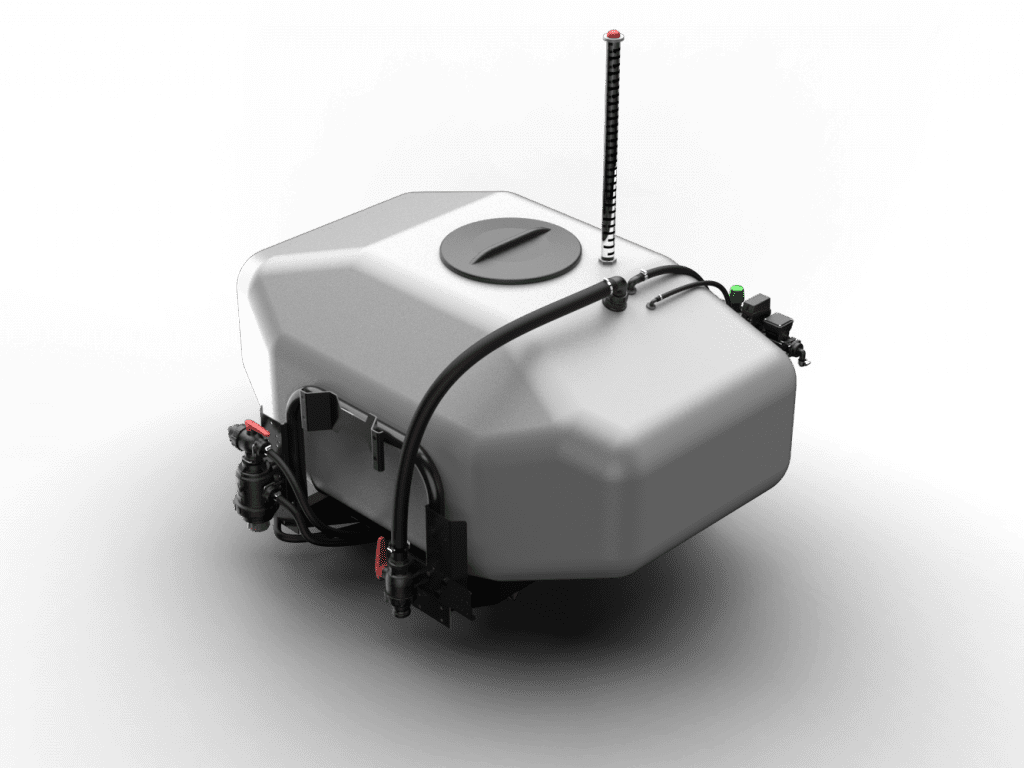 Front Fertilizer Tanks Three point hitch mounted. All our front mounted tanks are three point hitch mounted, allowing them to be mounted to the front of the tractor. Select tanks can also be mounted on the rear of the DSX no-till disc drill. Capacities available are 1100L, 1500L, 1800L and 2200L. These capacities all include a 100L section for clean water, and the 2200L tank also features a split section with a 750L capacity. All tanks are supplied with a full lighting pack including headlights, indicators and sidelights. All wiring and tractor harness are also included in the kit. A GPS speed sensor is used to eliminate complicating wiring when installing the tanks. |